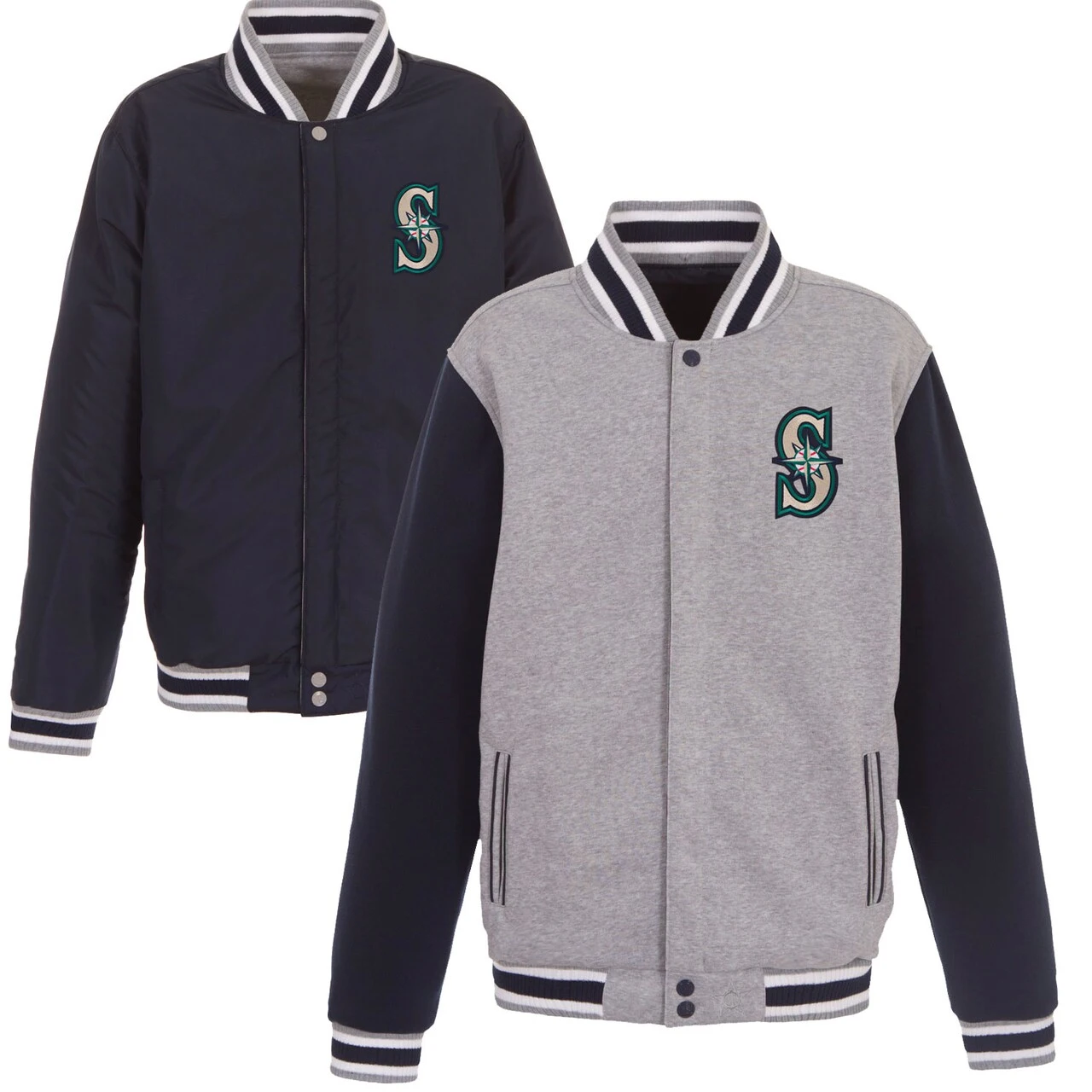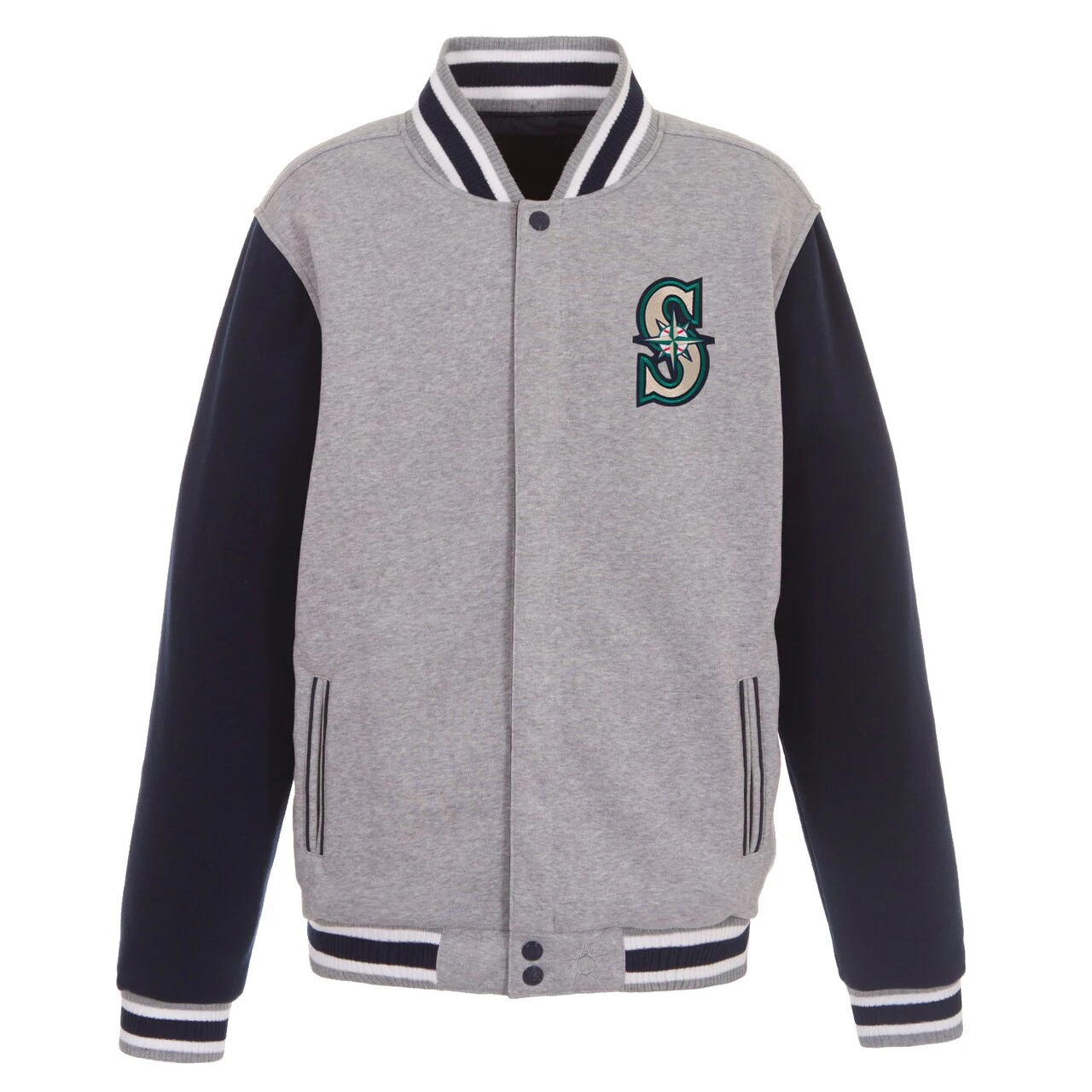 Be the first to review “Men’s Seattle Mariners JH Design Gray Embroidered Reversible Full Snap Fleece Jacket” Cancel reply