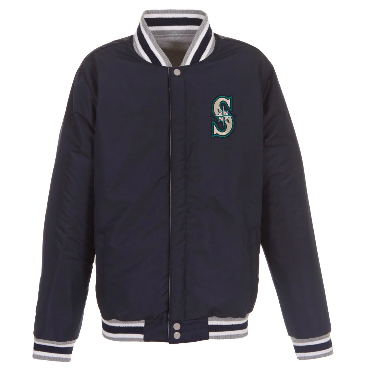 Men’s Seattle Mariners JH Design Gray Embroidered Reversible Full Snap Fleece Jacket