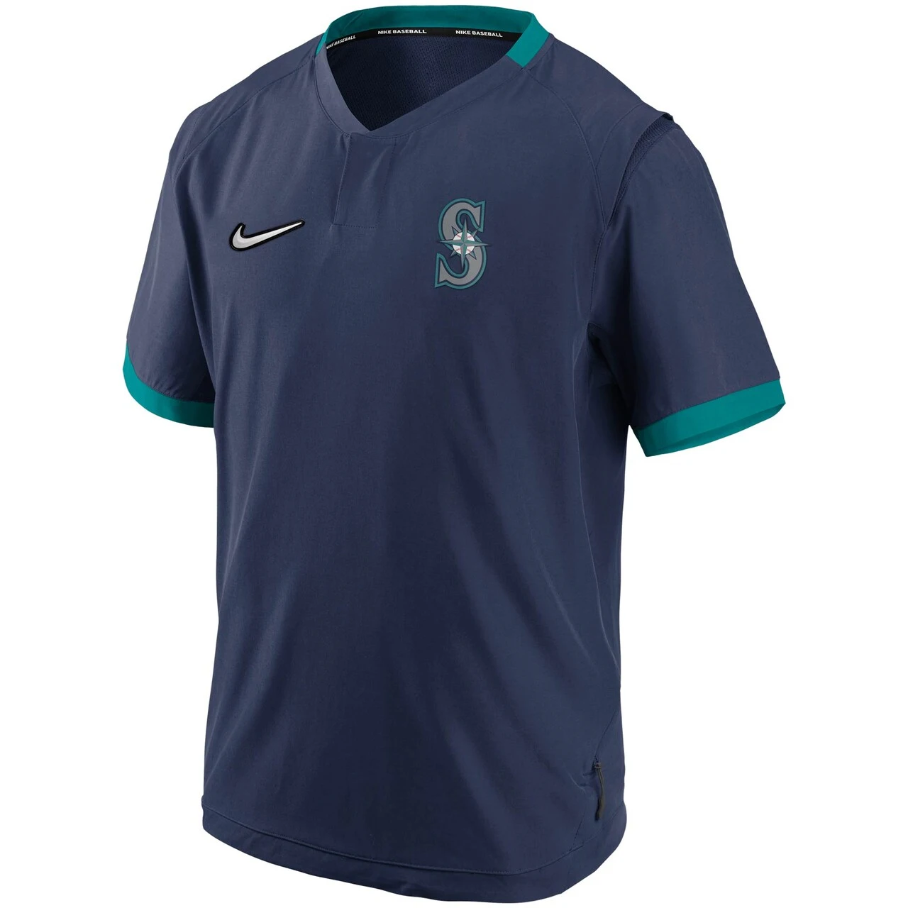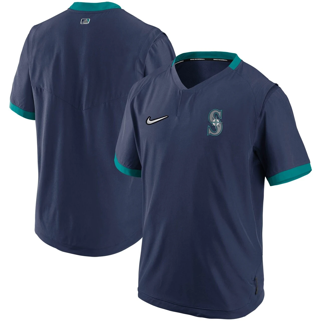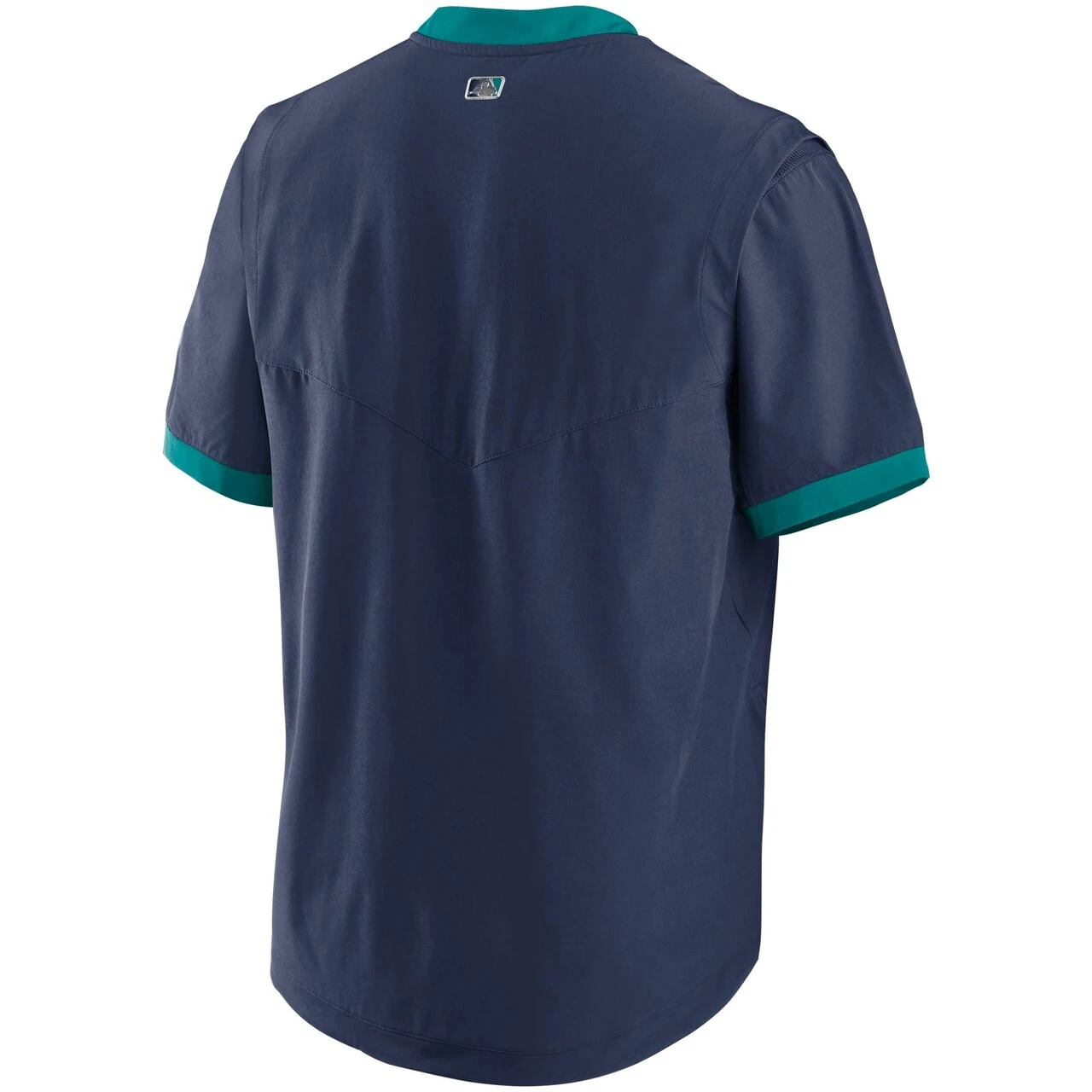 Men’s Seattle Mariners Nike Navy/Aqua Authentic Collection Short Sleeve Hot Pullover Jacket