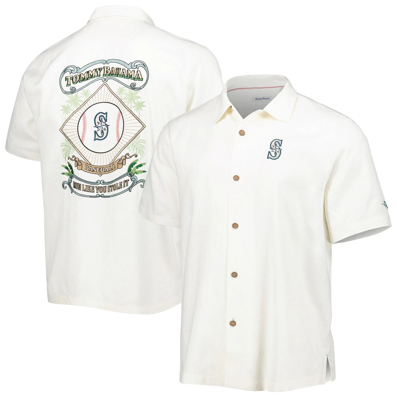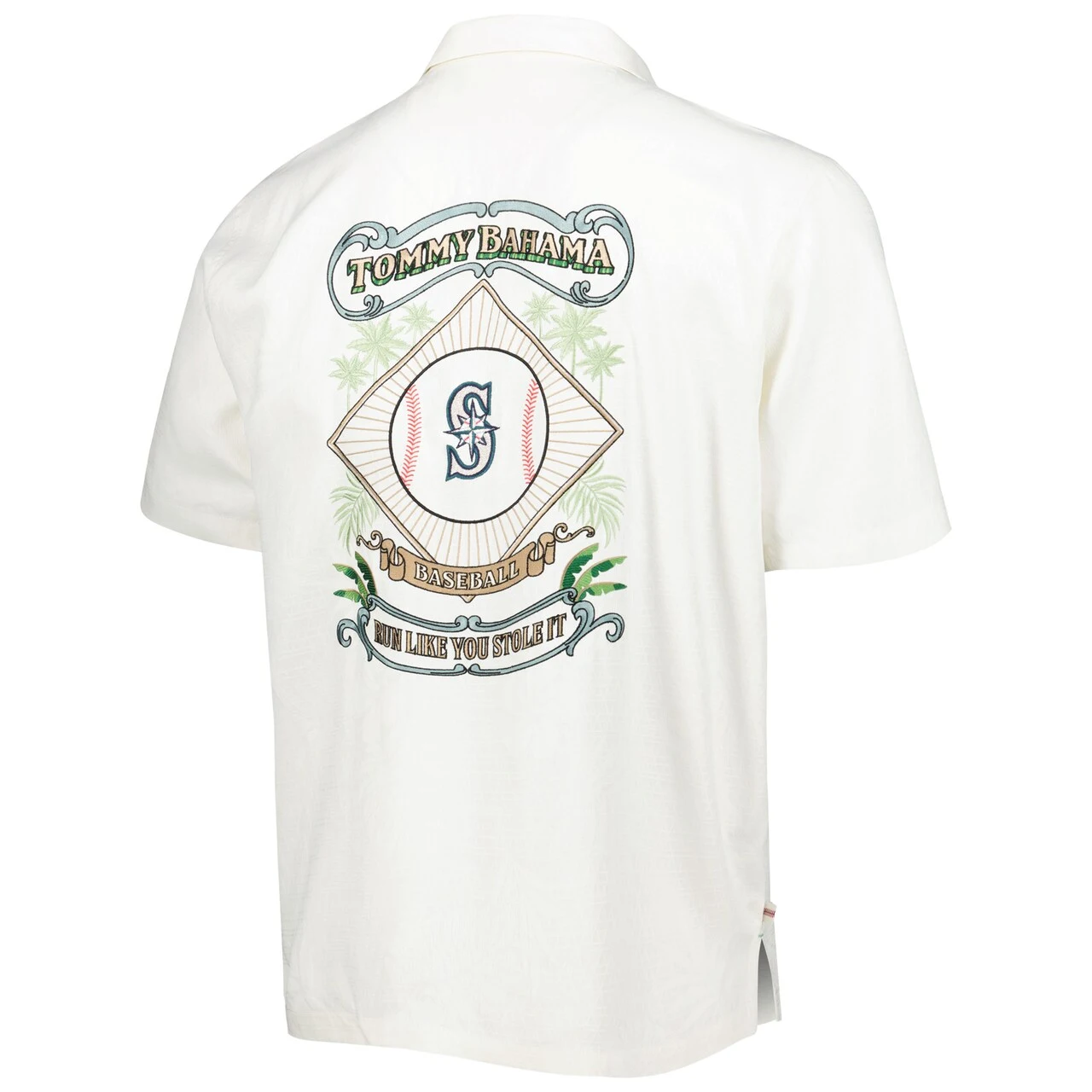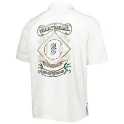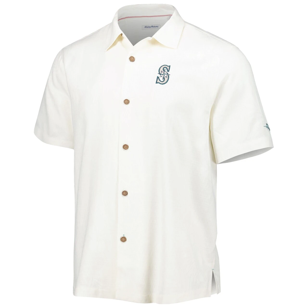 Men’s Seattle Mariners Tommy Bahama Cream Baseball Camp Button-Up Shirt