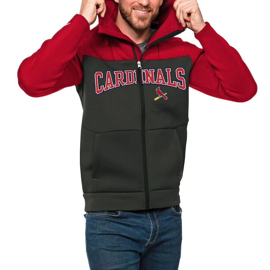 Men’s St. Louis Cardinals Antigua Red/Charcoal Wordmark Protect Full-Zip Hoodie