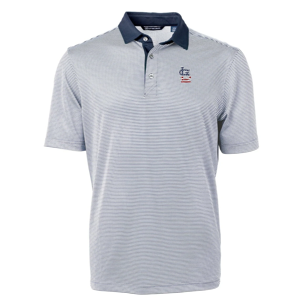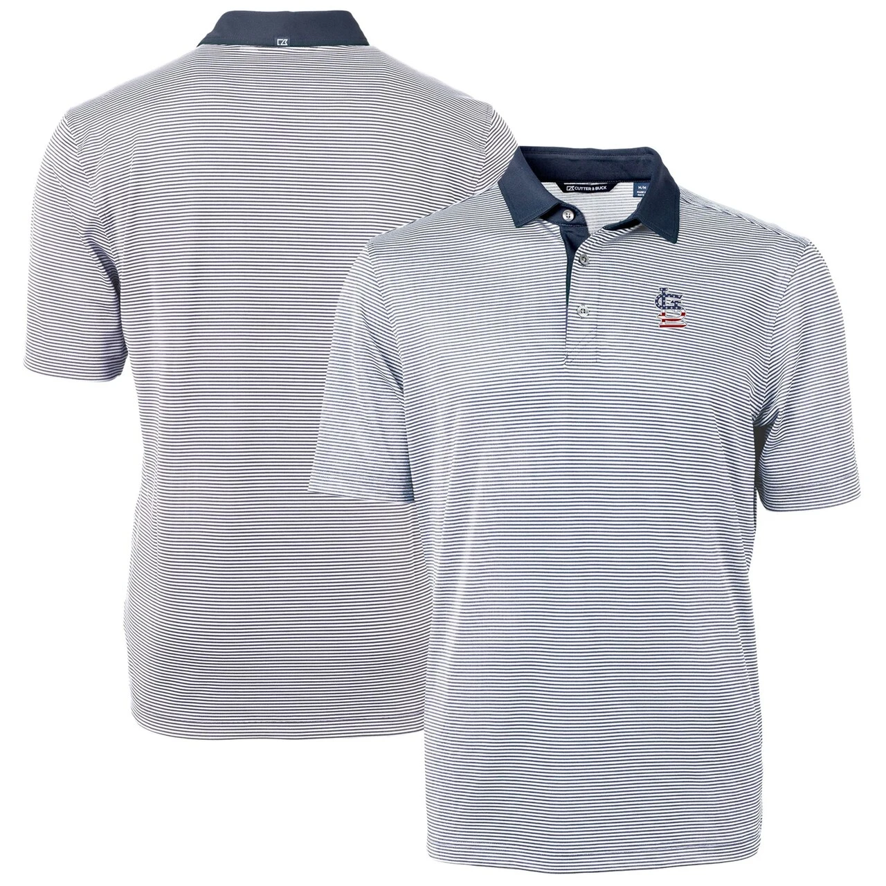 Men’s St. Louis Cardinals Cutter & Buck Navy Americana Logo Virtue Eco Pique Stripe Recycled Polo