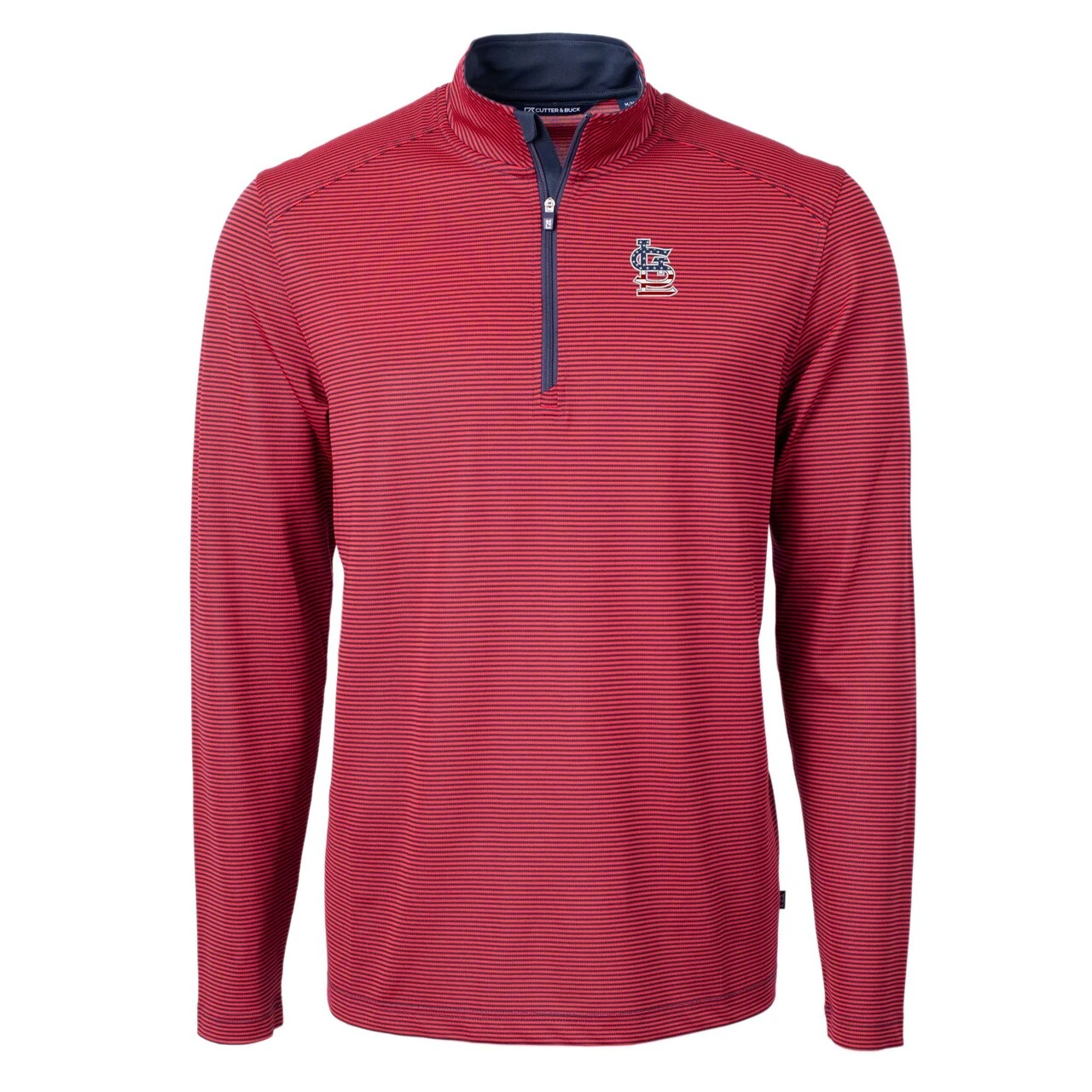 Men’s St. Louis Cardinals Cutter & Buck Red Americana Logo Virtue Eco Pique Stripe Recycled Quarter-Zip Pullover Top