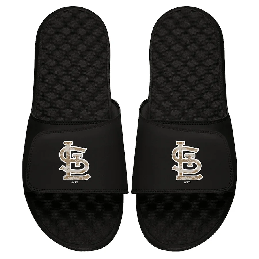 Men’s St. Louis Cardinals ISlide Black Camo Logo Slide Sandals